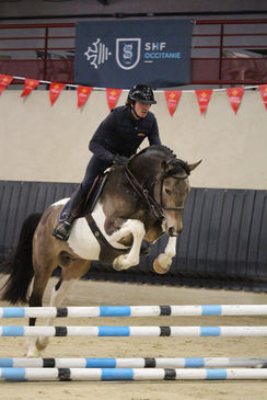 His second dam SPIRIT, She entered competition at the age of four and had a fantastic season, finishing in the national final with 14 clear rounds out of 17. At five and six, she continued to be consistent and often went clear, notably at the Pau Young Horse Championships at five. She started the six-year-old A season with, once again, a majority of clear rounds. At seven, she was sold and competed on the amateur circuit, then dedicated to breeding. Her sire, Bachus, is the product of a bold and successful cross between a Holsteiner mare and an Arabian stallion, Shagya, which allowed him to compete at the highest level in 1.60m show jumping. On her dam's side, Spirit has an American bloodline, which has given her strength and a well-rounded physique.