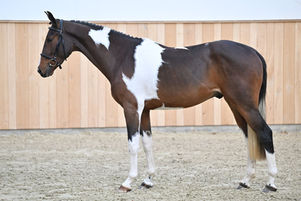 His father EDDY WALLY, the first piebald stallion to be BWP approved. Eddy Wally combines the very best jumping blood in his pedigree. His father Querlybet Hero needs little introduction, but he also comes from a good lineage on his mother's side. His mother, the mare Vene Vidi Veci, is a daughter of Landetto and is therefore the full sister of the BWP-USA approved stallion Socrates. Courteney, a half-sister of Eddy Wally, also produced the top show jumping horses Gucci DV and Kriskras DV. He began his young horse career in show jumping and at the age of 4 finished 3rd in the National final. He then devoted himself to eventing in which he excelled. He will continue and end his career under the saddle of Belgian rider Melanie Valckx on the CCI 4* eventing grounds where they will be regularly classified.