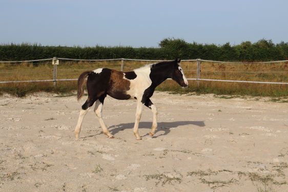 Very handsome son of Ambre d'Elincourt, a black ebony stallion who passed on his gene to him. Prince, in addition to being a tobiano, is homozygous for black! Well-oriented, very strong, he is the grandson of Sioux du Godion and great-grandson of the Arc de Triomphe.